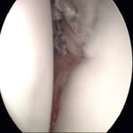 Abb. 7: Wie im MRT bereits zu vermuten, ist es im Rahmen des Unfallereignisses auch zu einer Ablösung des oberen Anteiles der Gelenklippe mitsamt der daran angehefteten langen Bicepssehne gekommen. | |